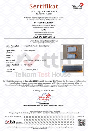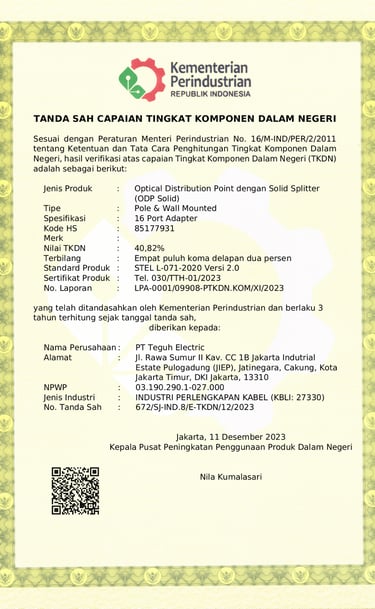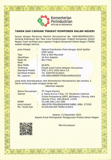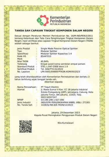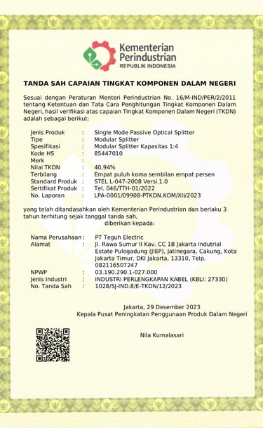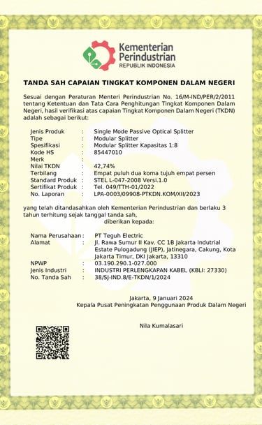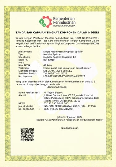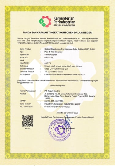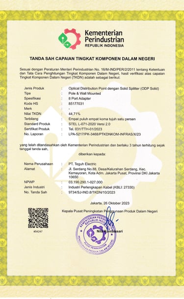 Dengan Perkembangan Teknologi Telekomunikasi Yang Semakin Pesat Maka Berbagai Upaya Telah Dilakukan Oleh PT. TEGUH ELECTRIC Untuk Ikut Berperan Dalam Memajukan Teknologi Di Dalam Negeri, Termasuk Dalam Pembangunan Infrastruktur Jaringan Telekomunikasi, Khususnya Yang Berbasis Teknologi Fiber Optik.